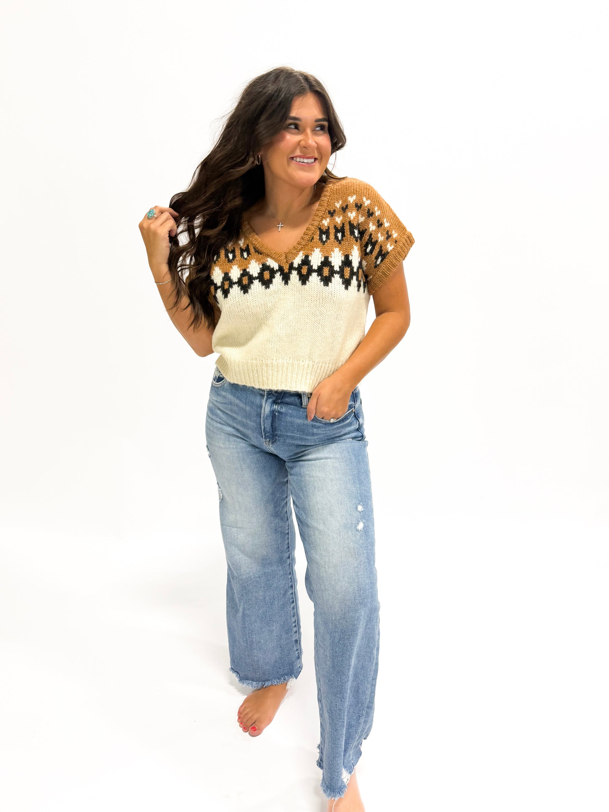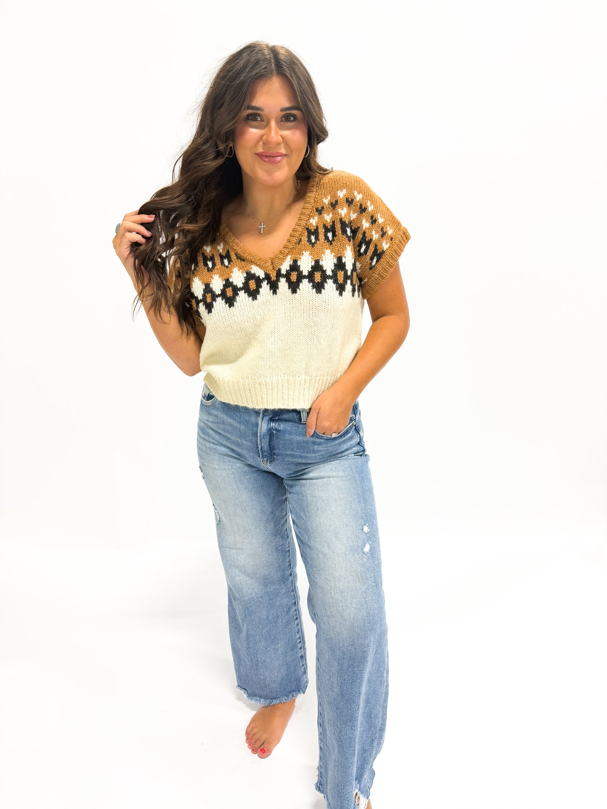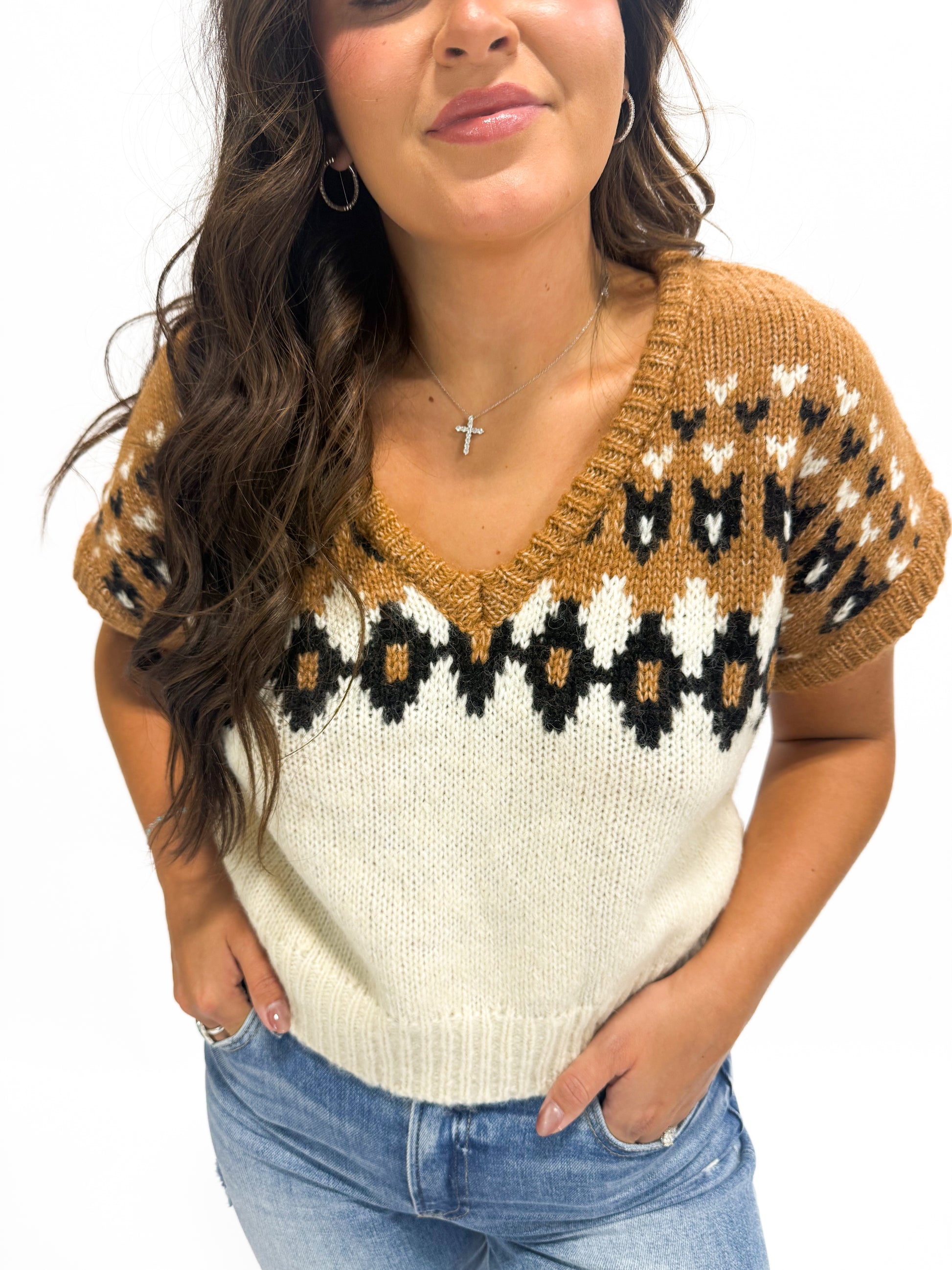 - This playful knit pullover features a flattering V neckline, comfy short sleeves, and trendy drop shoulders!