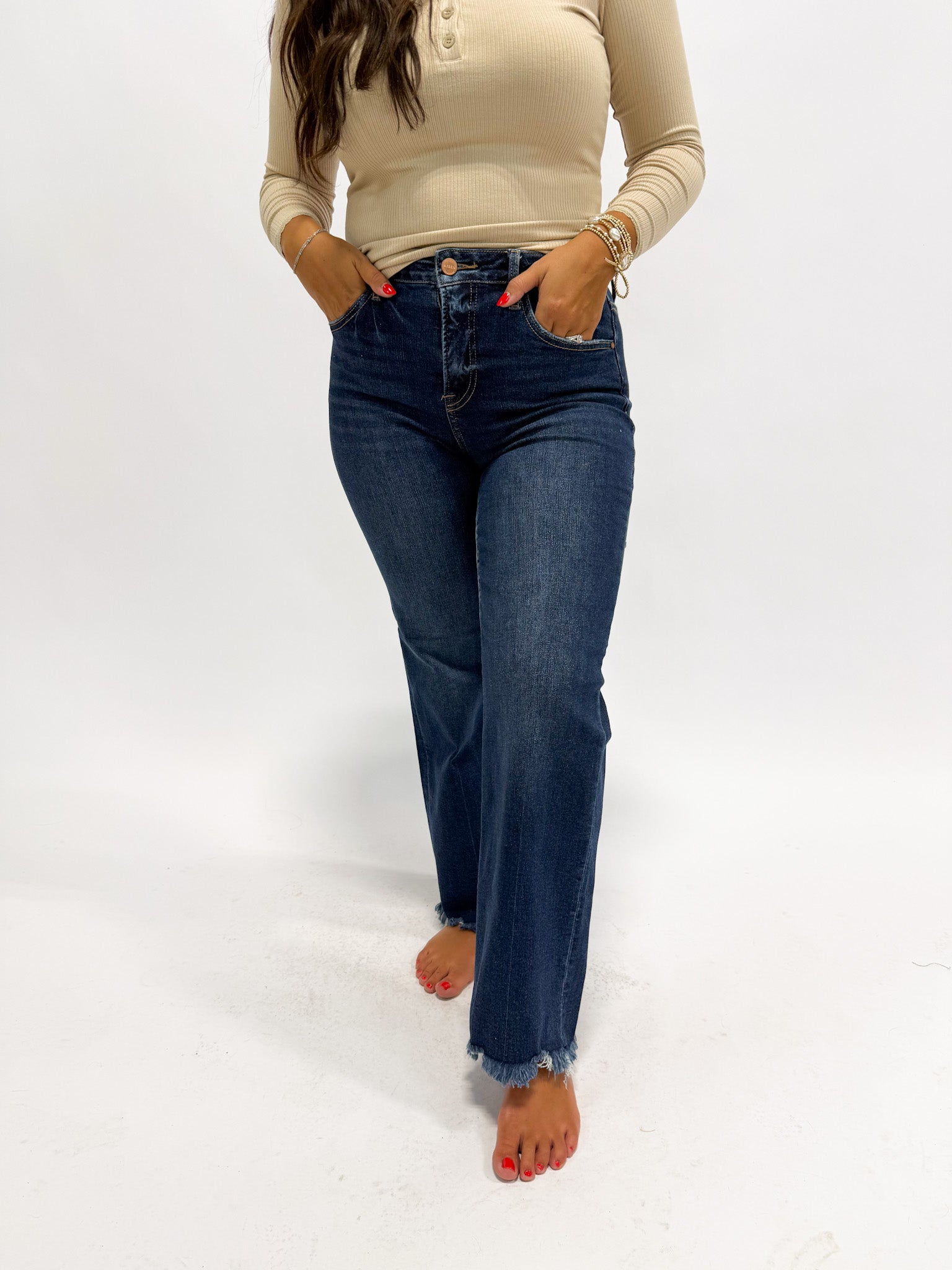 Step into style with the Daisy Jean—dark wash, high-rise ankle straight jeans designed to flatter your figure!