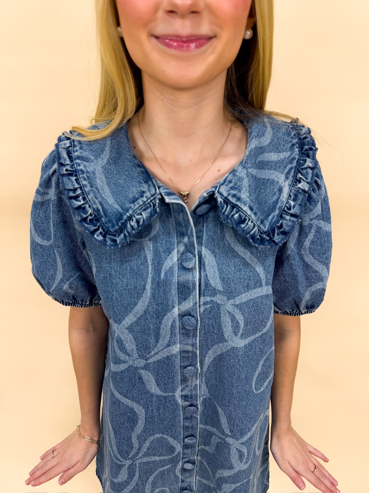 - Adorable denim dress with all the romantic details you need!