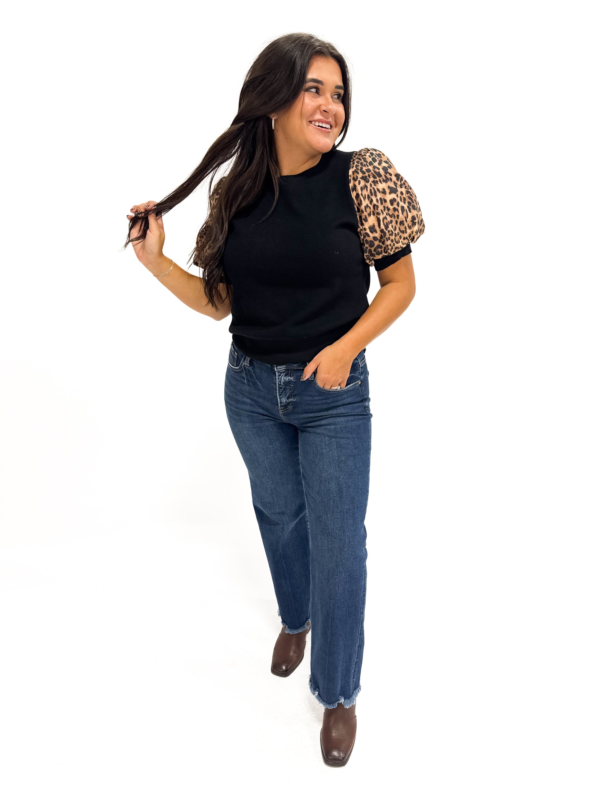 - The Day Dreaming Top features a playful leopard print cap sleeve that adds a wild twist to your look.