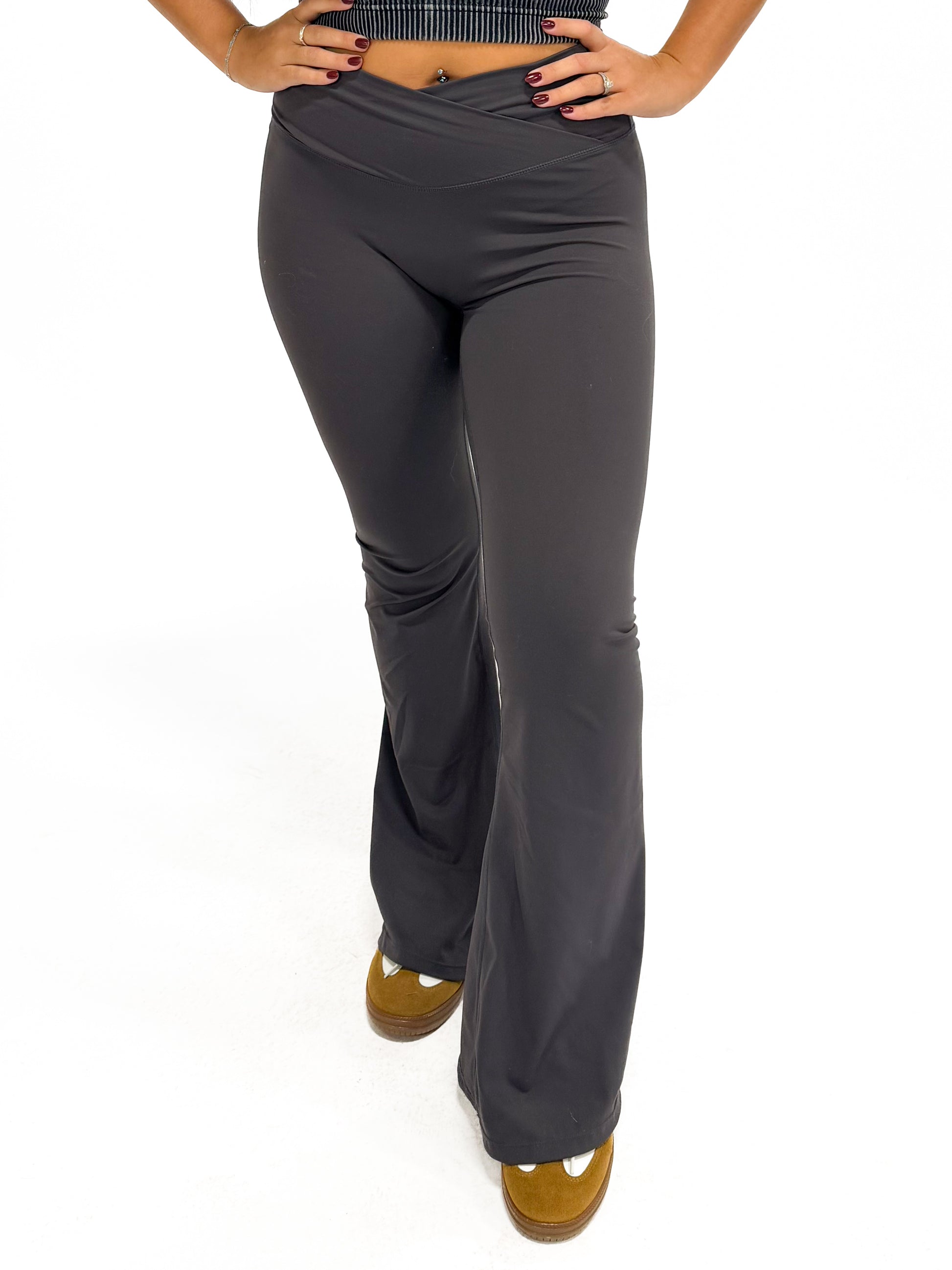 - Introducing the revamped High Waist Crossover Flare Legging—now with a smooth front free of seams for a sleeker silhouette!