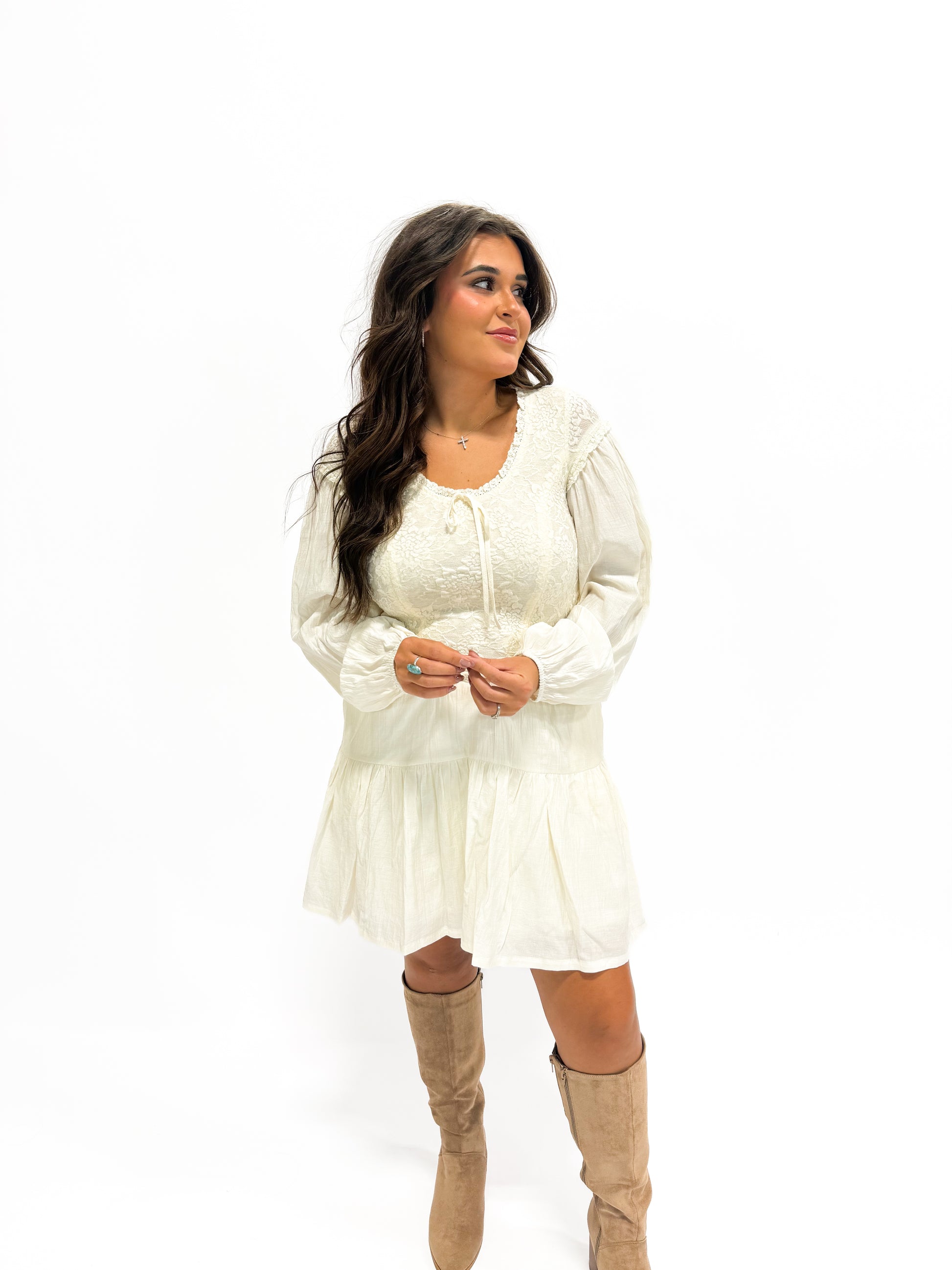 - Perfectly paired with your favorite boots, this dress is ready to take you from day adventures to night escapades effortlessly!