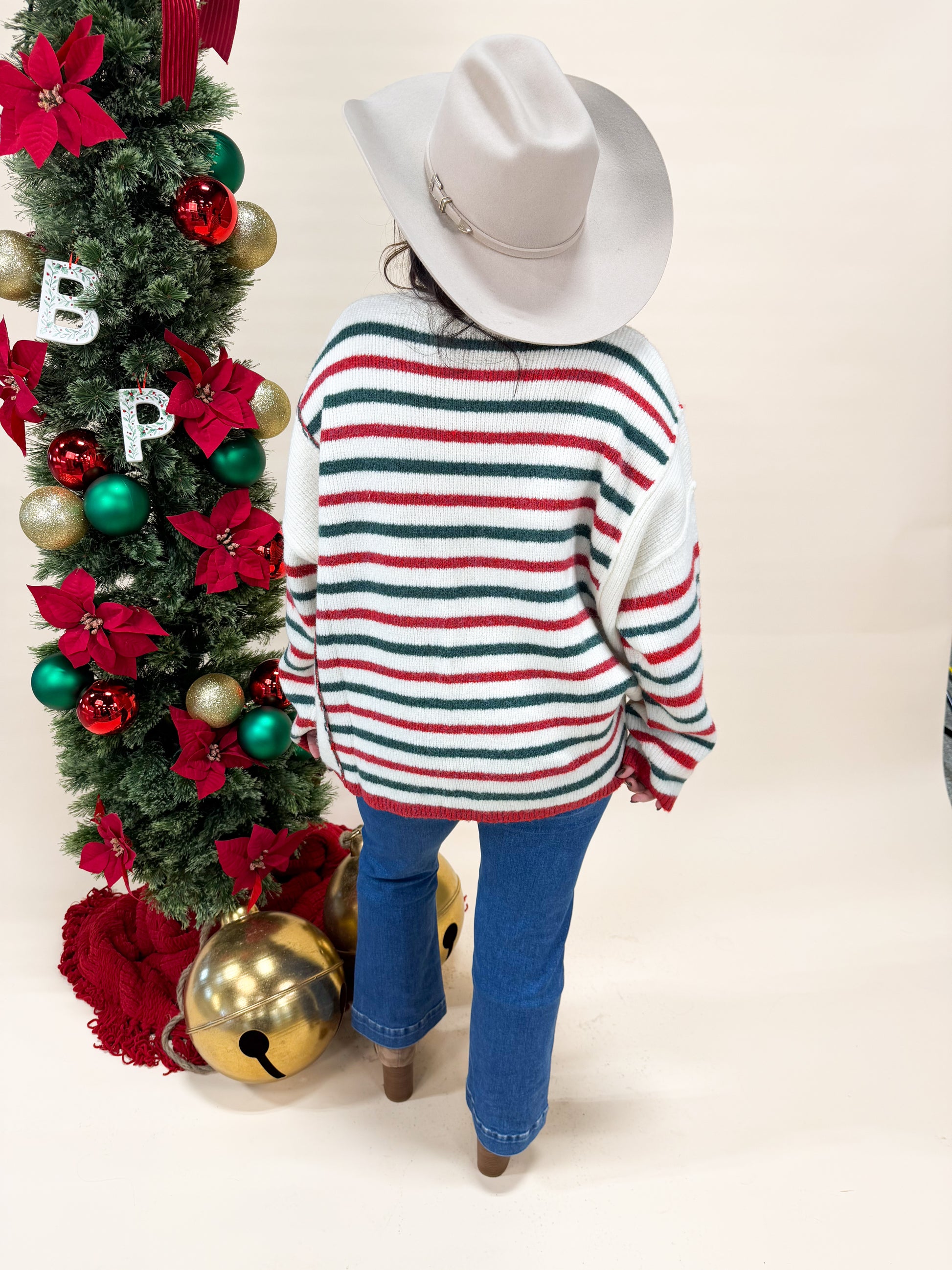 - Wrap yourself in cozy sweetness with this delightfully striped sweater!
