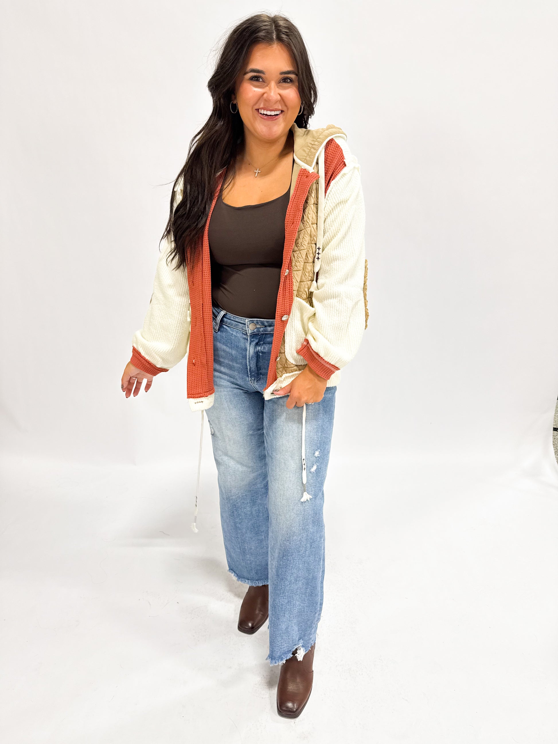 - This versatile piece mixes textures to keep your outfit fresh and fun, while providing comfortable warmth for cooler days!