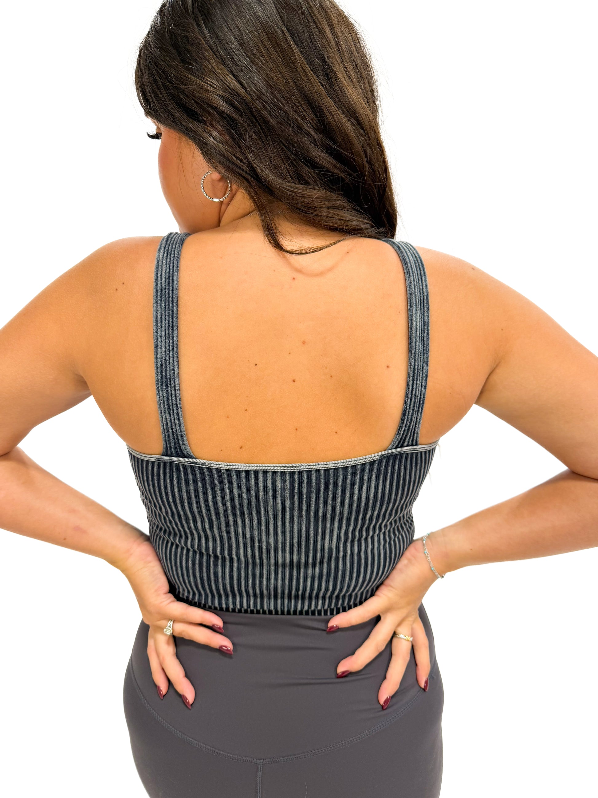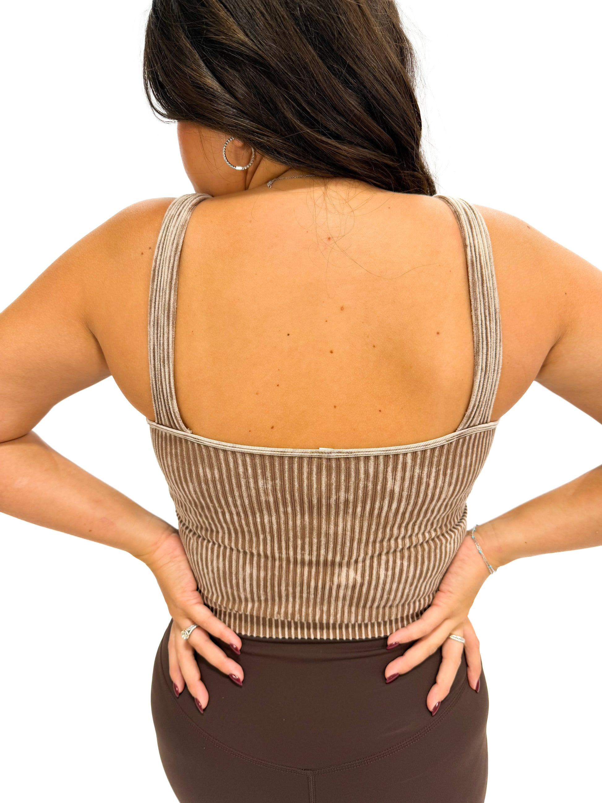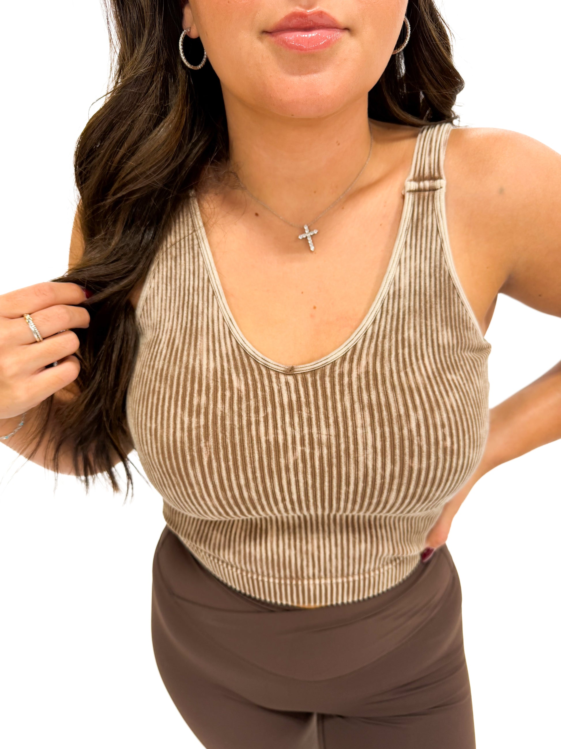 - This V-neck washed rib seamless crop bra tank offers a flattering fit with built-in padding for extra support.